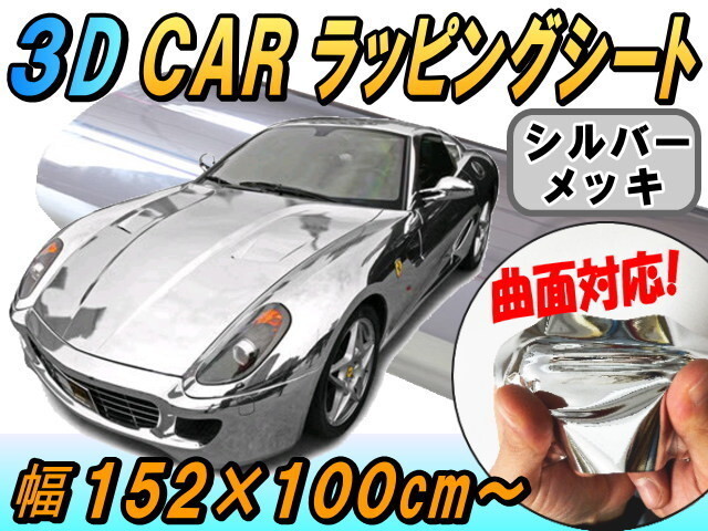 > メッキラッピングシート (大) 銀 幅152cm×100cm カーボディ メタル調フィルム クローム メッキ 鏡面ミラー調 伸縮ビニール シルバー1m 7