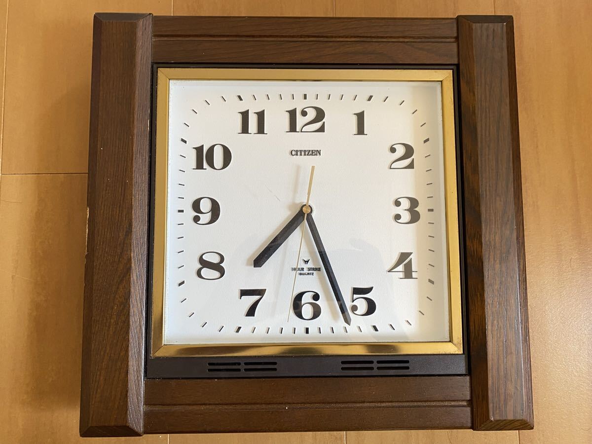 - 【CITIZEN】壁掛け時計 木枠スクエア クォーツ アナログ シチズン 昭和レトロ 掛け時計