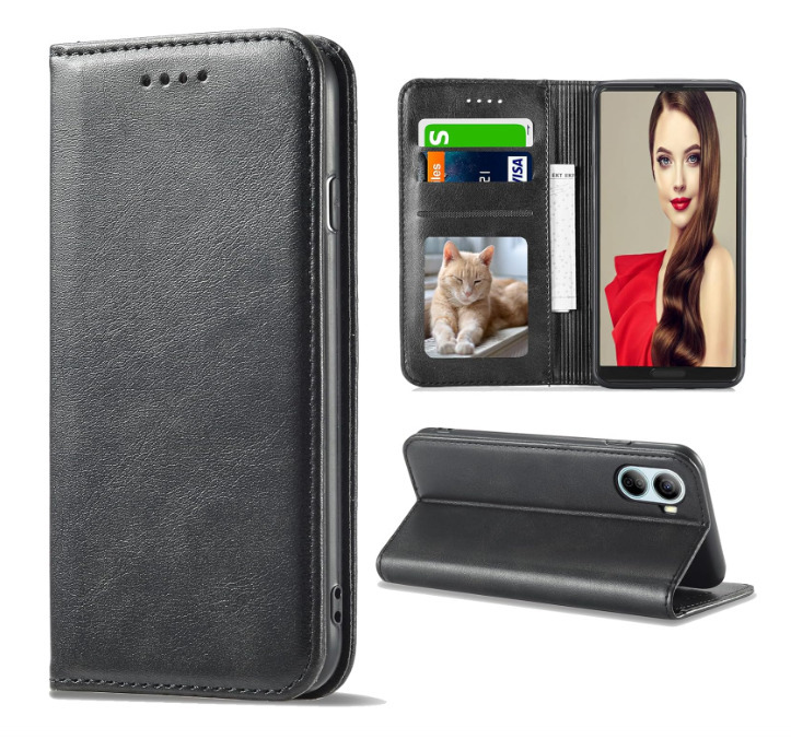 > Libero 5G IV ケース 手帳型 A302ZT 合革レザー TPUケース ストラップホール付き カード収納 スタンド機能 ブラック ay105