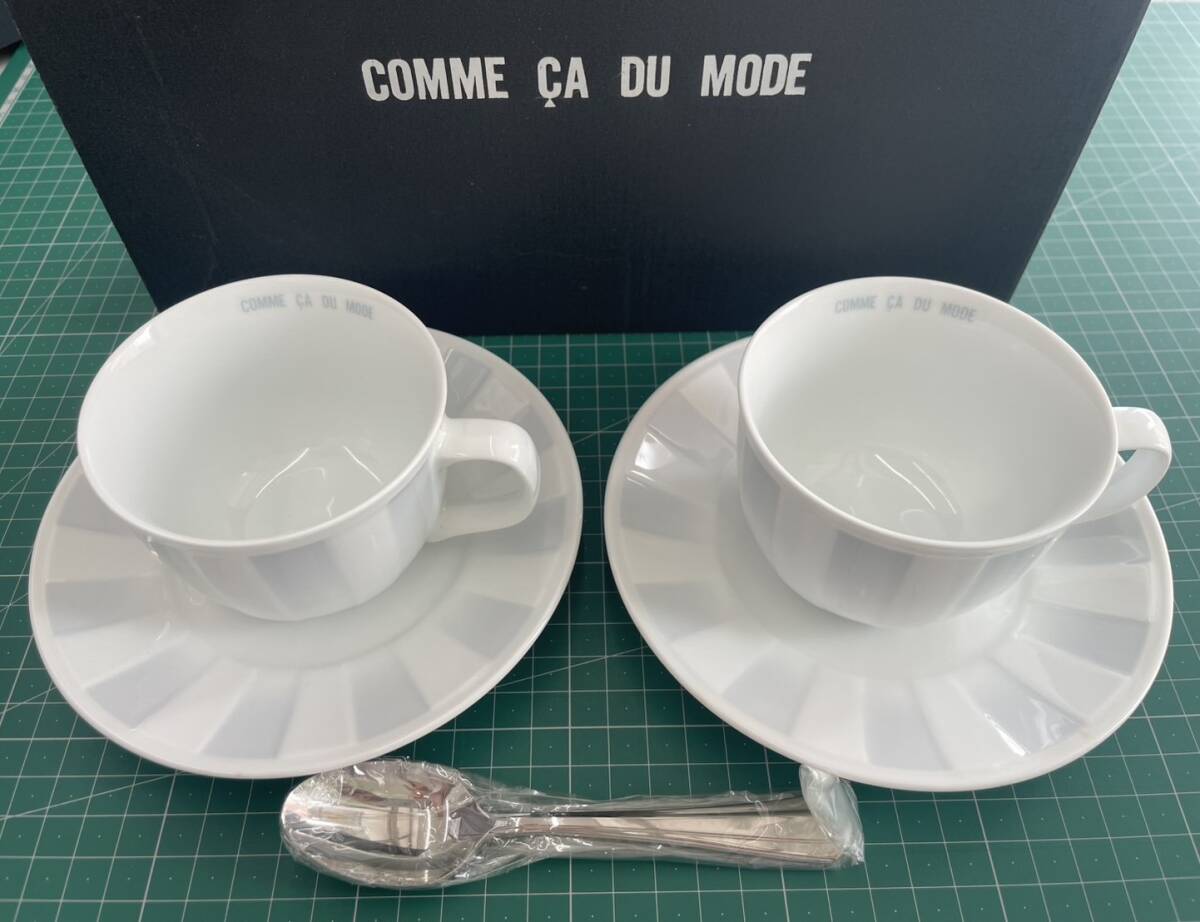 - #2827A 未使用 COMME CA DU MODE コムサ カップ&ソーサー 2客セット ティーカップ ペア ティースプーン付