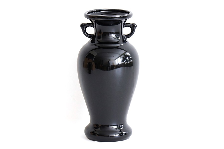 - 国産 陶器 花瓶 ■ サギ ■ 黒無地 7寸 ■ 単品 ■ 高さ21cm ■ 仏壇 お盆 お彼岸 お墓参り 供養