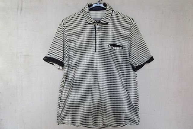 - CHRISTIAN ORANI/襟付半袖シャツ/ポロシャツ/ギンガムチェック柄/襟二重/白/ホワイト/黒/ブラック/グレー/モノトーン/Lサイズ(8/6R7)