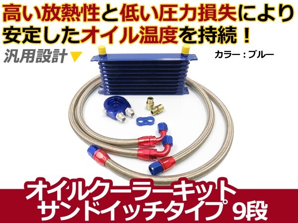 > オイルクーラーキットサンドイッチタイプ コア 9段 汎用 【オイル クーラー 冷却 パーツ メンテナンス 整備 DIY 高圧対応