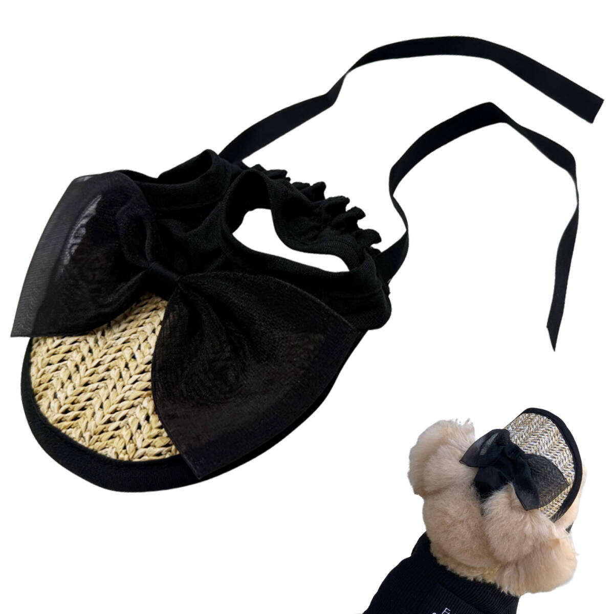 - 犬 猫 帽子 夏 ペット帽子 麦わら帽子 サンバイザー コスプレ ハロウィン イベント かわいい 日焼け防止 小型 中型 ブラック Sサイズ