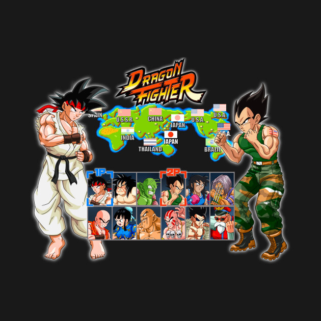 - 【Tシャツ】 DRAGON FIGHTER ストⅡ ストリートファイター ドラゴンボール ブラック S/M/L/XL
