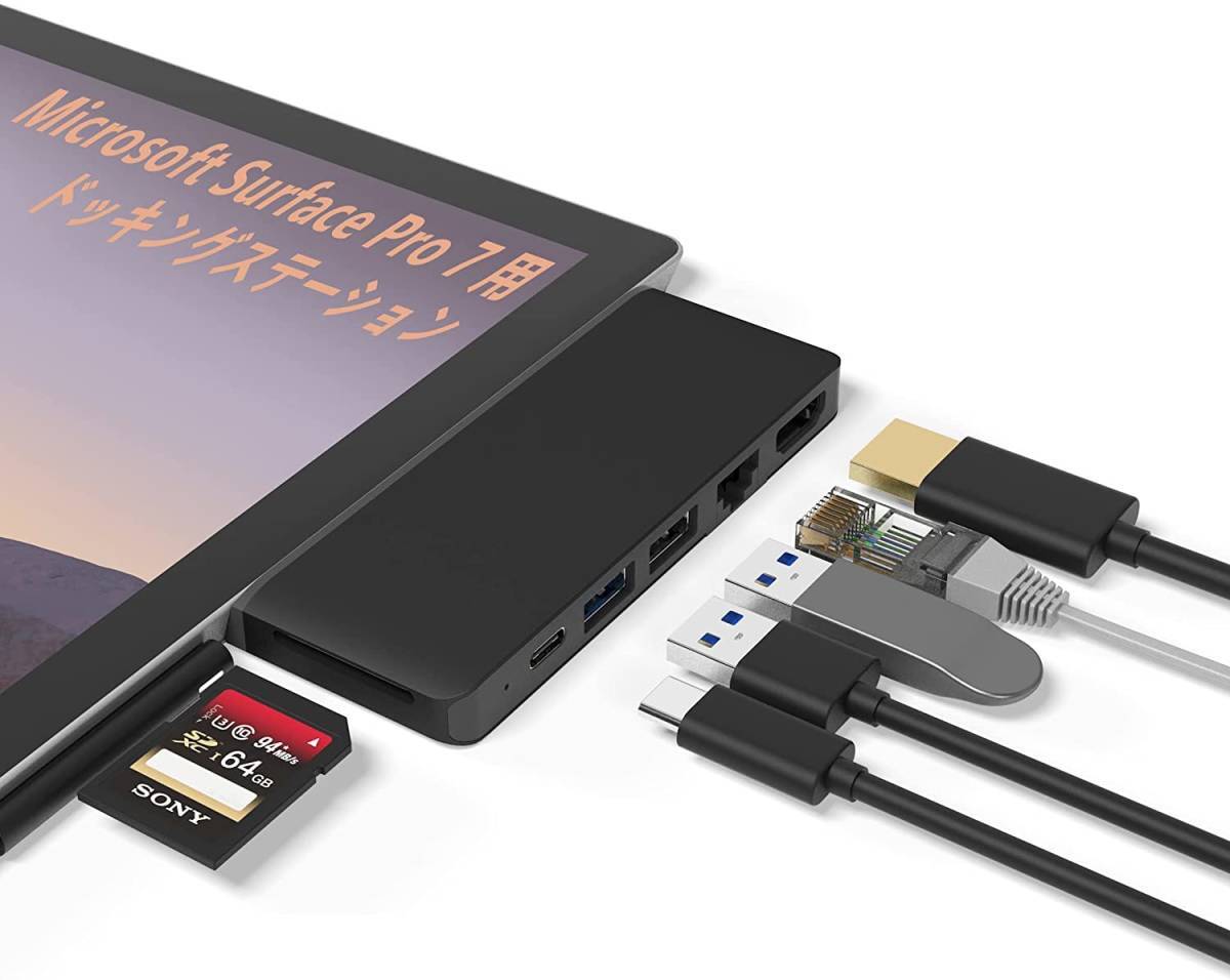 - Surface Pro 7 ハブ 6ポート付き 4K マルチ 6 in 1 アルミニウム サーフェス pro7 専用 ハブ