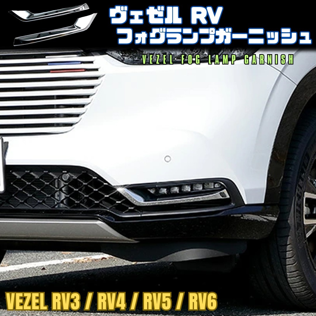 > 【ホンダ ヴェゼル】 フォグランプ カバー / シルバークロームメッキ / HONDA VEZEL RV3 RV4 RV5 RV6 対応 / ライト トリム ガーニッシュ