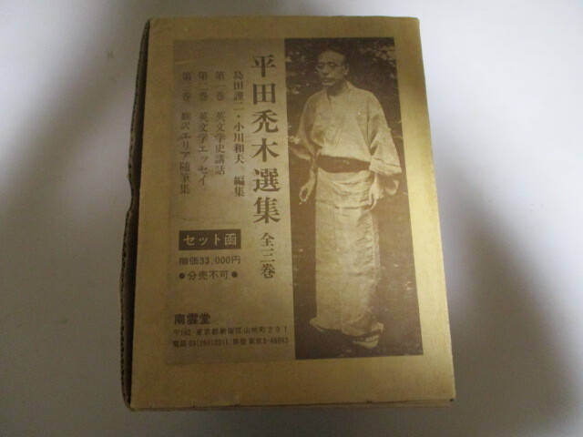 - NI002/ 平田禿木選集全3巻 南雲堂 (定価3万3千円) 第1巻英文学史講話/第2巻英文学エッセイ/第3巻翻訳エリア随筆集 英文学者・翻訳家
