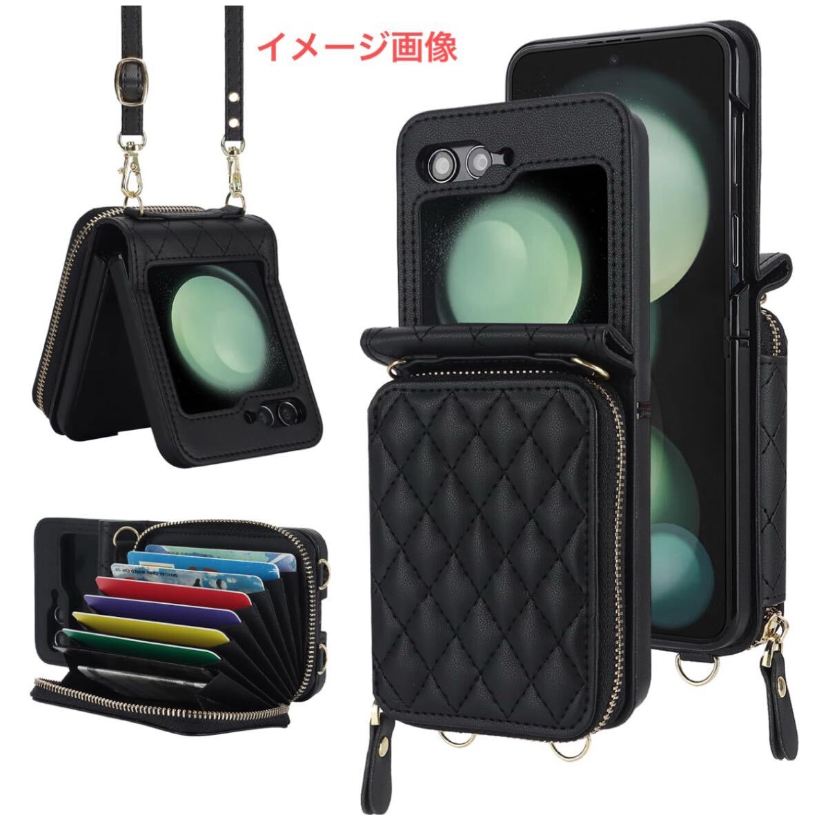 - y080703m galaxy z flip 5 カード収納 手帳型 ケース ブラック ショルダー付き