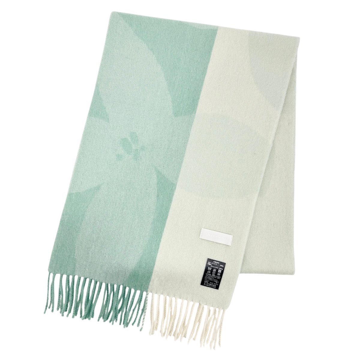 - 美品 ANTEPRIMA アンテプリマ 「カシミヤ カランコエ バイカラー マフラー」 花柄 100% ロゴ刺繍 端フリンジ 170×30cm ライトグリーン
