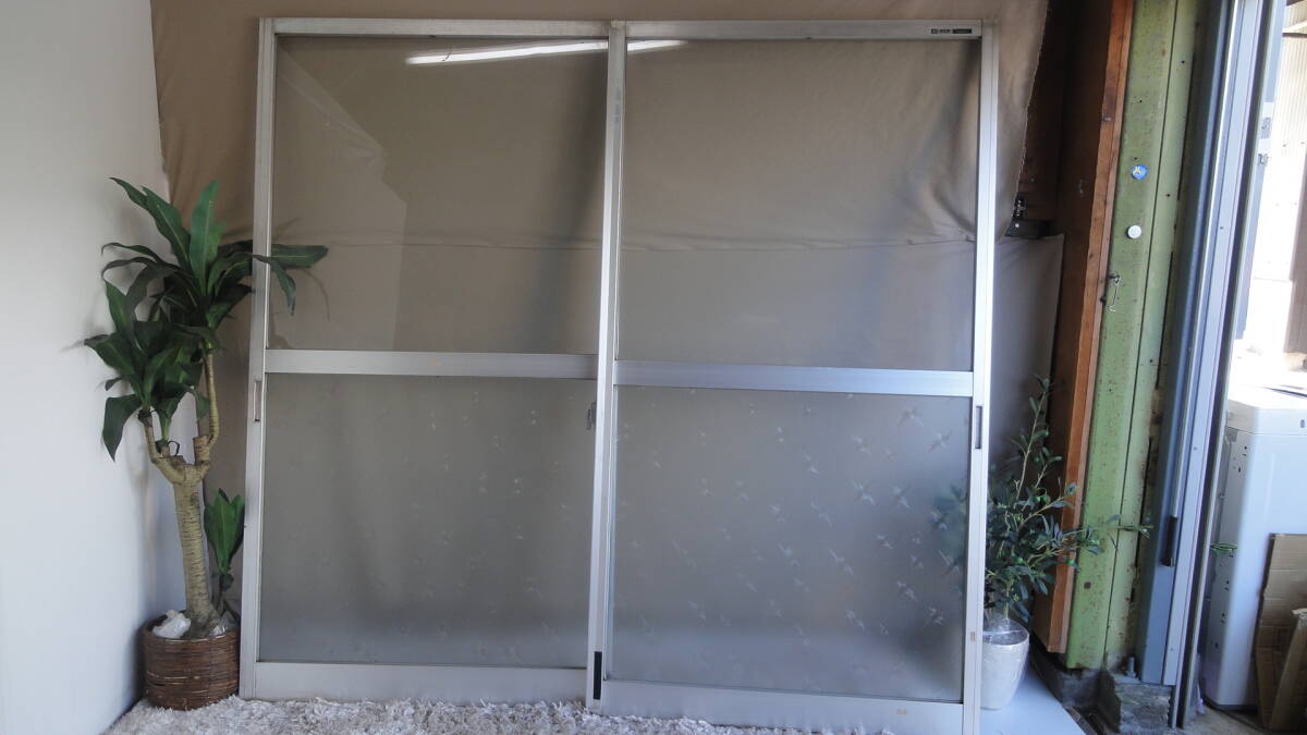 - ひ830.三協アルミ 引き戸 デザインガラス モザイク 2枚 ガラス戸 3K-N TS-6359 建具 レトロ