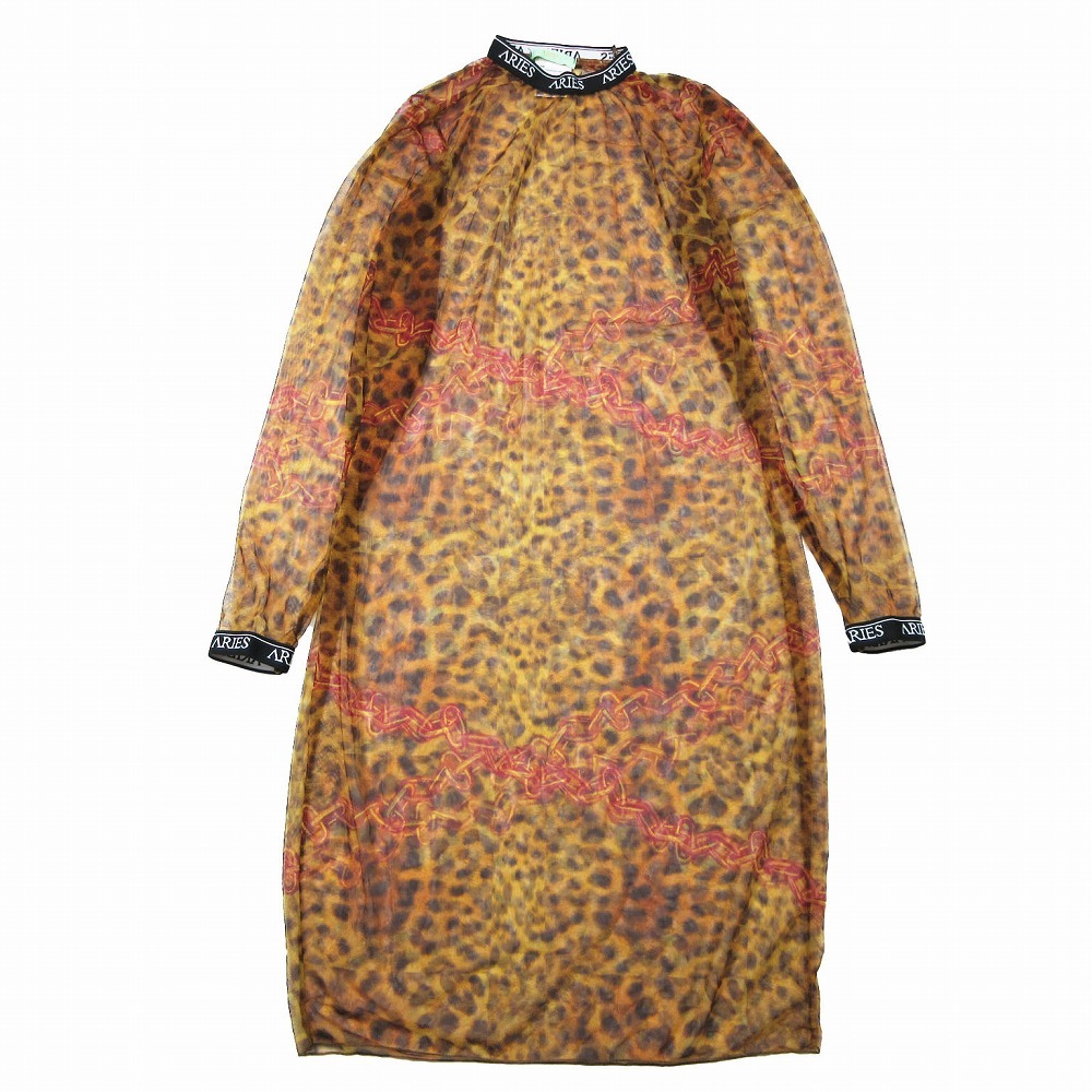 > ARIES アリーズ チュール レオパードチェーンプリント ワンピース トップス シアー ブラウン サイズM レディース 【中古】