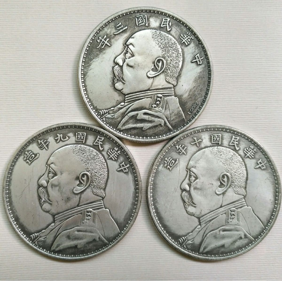 - お得! 超大型 拾圓 硬貨 中国 古銭 中華民国3.9.10年 硬貨セット 袁世凱 大型銀貨 一円銀貨 外国硬貨 貿易銀 直径60mm 三年分サインあり