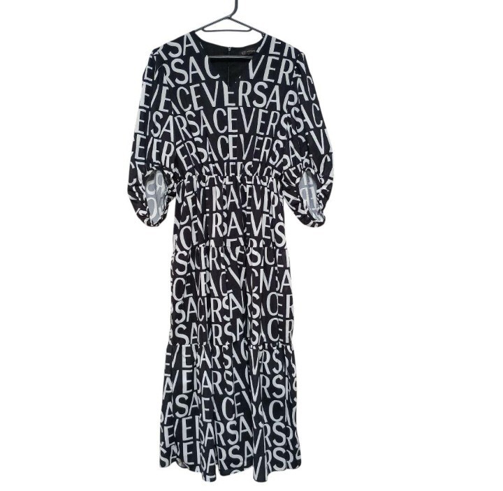 - 希少☆VERSACE☆ロゴデザインロングワンピース☆コレクターアイテム・ヴィンテージ・古着 マルチ ブラック ロング