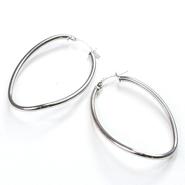 > ウノアエレ K18WG フープピアス W27×H40mm 2.7g 750WG 楕円 ひねり ホワイトゴールド NJ 未使用品