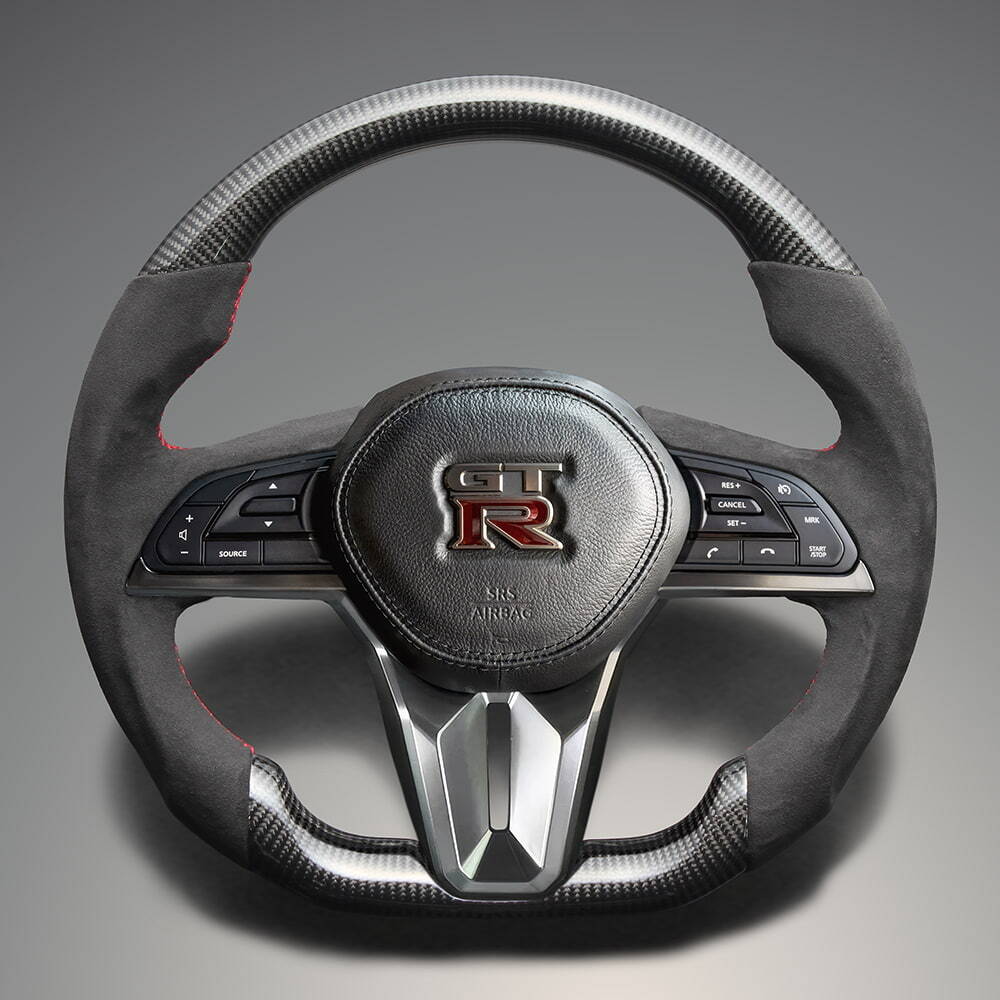 - FEGGARI GT-R R35 ステアリング リアルカーボン x アルカンターラ(ブラック) x レッド ユーロステッチ / LS307 フェガーリ