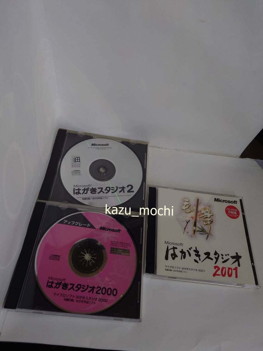 Windows「はがきスタジオ」の2、2000アップグレード版、2001アップグレード版の3本セットです。