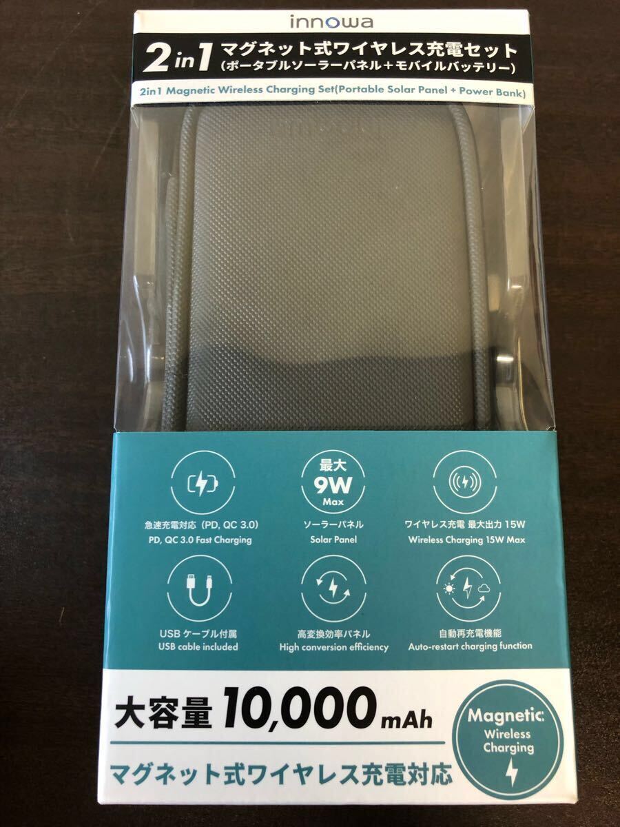 - 2in1 マグネット式ワイヤレス充電セット ポータブルソーラーパネル+モバイルバッテリー innowa