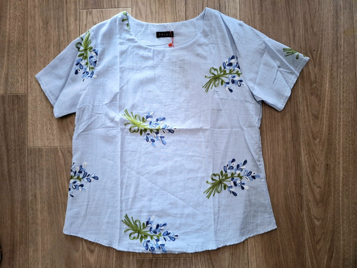 - TRUBE 刺繍 綿ブラウス ブルー M~L