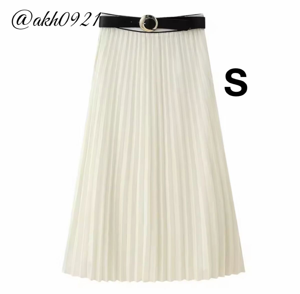 > 新品★夏新作★vintage ヴィンテージ レトロ ベルト付き プリーツ ロング フレアスカート ボトムス Sサイズ レディース★ZARA 好きな方に