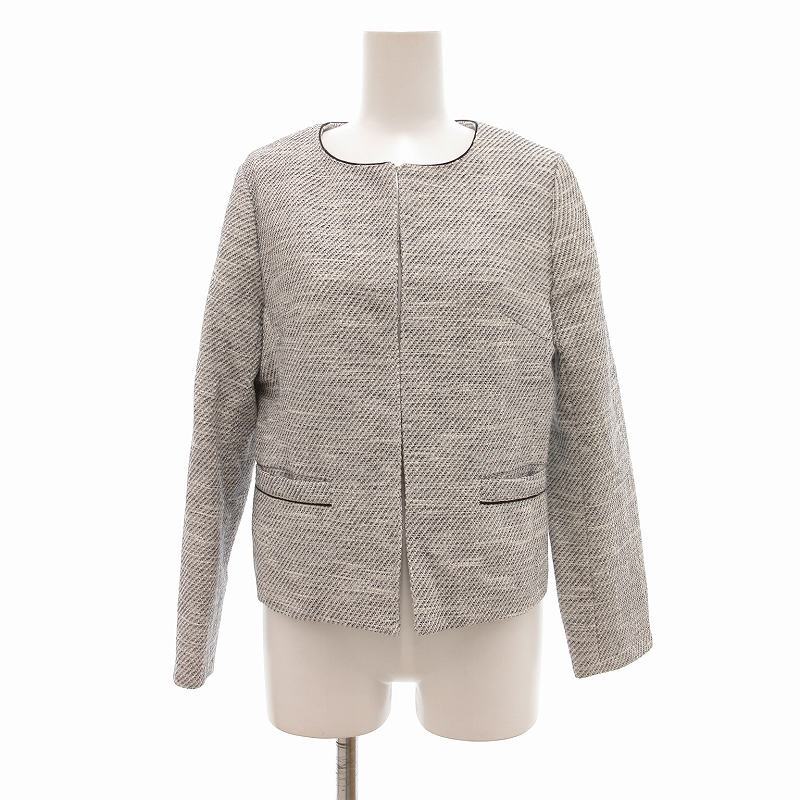 - シンプリシテェ SIMPLICITE アヤオリツイードジャケット ノーカラー ラメ S 白 ホワイト 紺 ネイビー /UO レディース