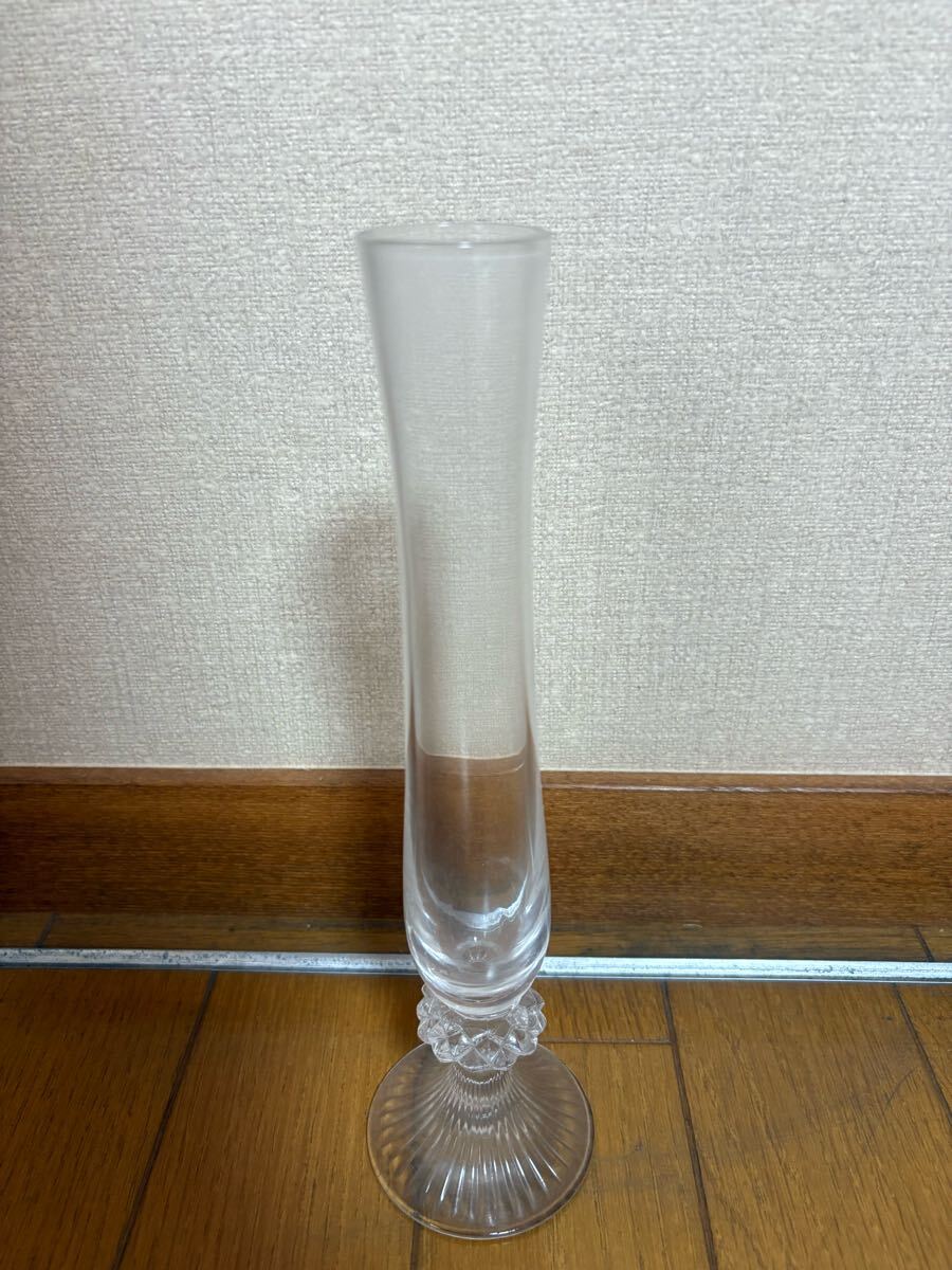 - 【美品】シンプルガラス花瓶 フルートグラス型 高さ24cm 深さ17.5cm スリムな一輪挿しに最適 自宅保管品 花瓶 インテリア