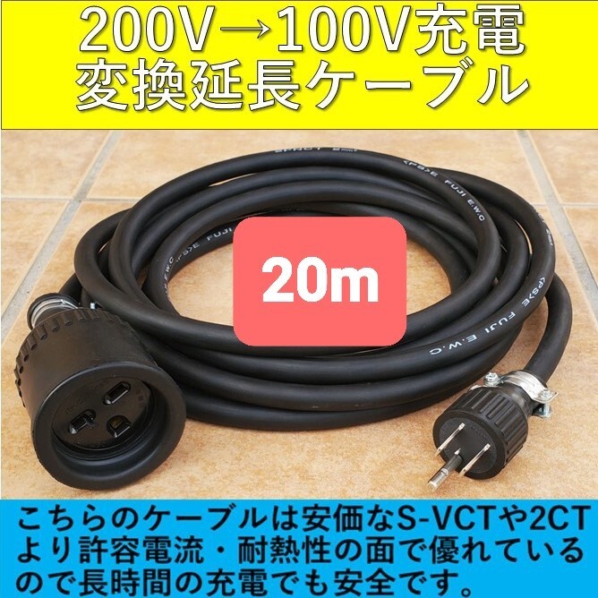 > ★実績多数 充電変換延長ケーブル 200V→100V 20m 20メートル プリウス RAV4 PHV リーフ LEAF SAKURA サクラ ekクロスEV 電気自動車 EV