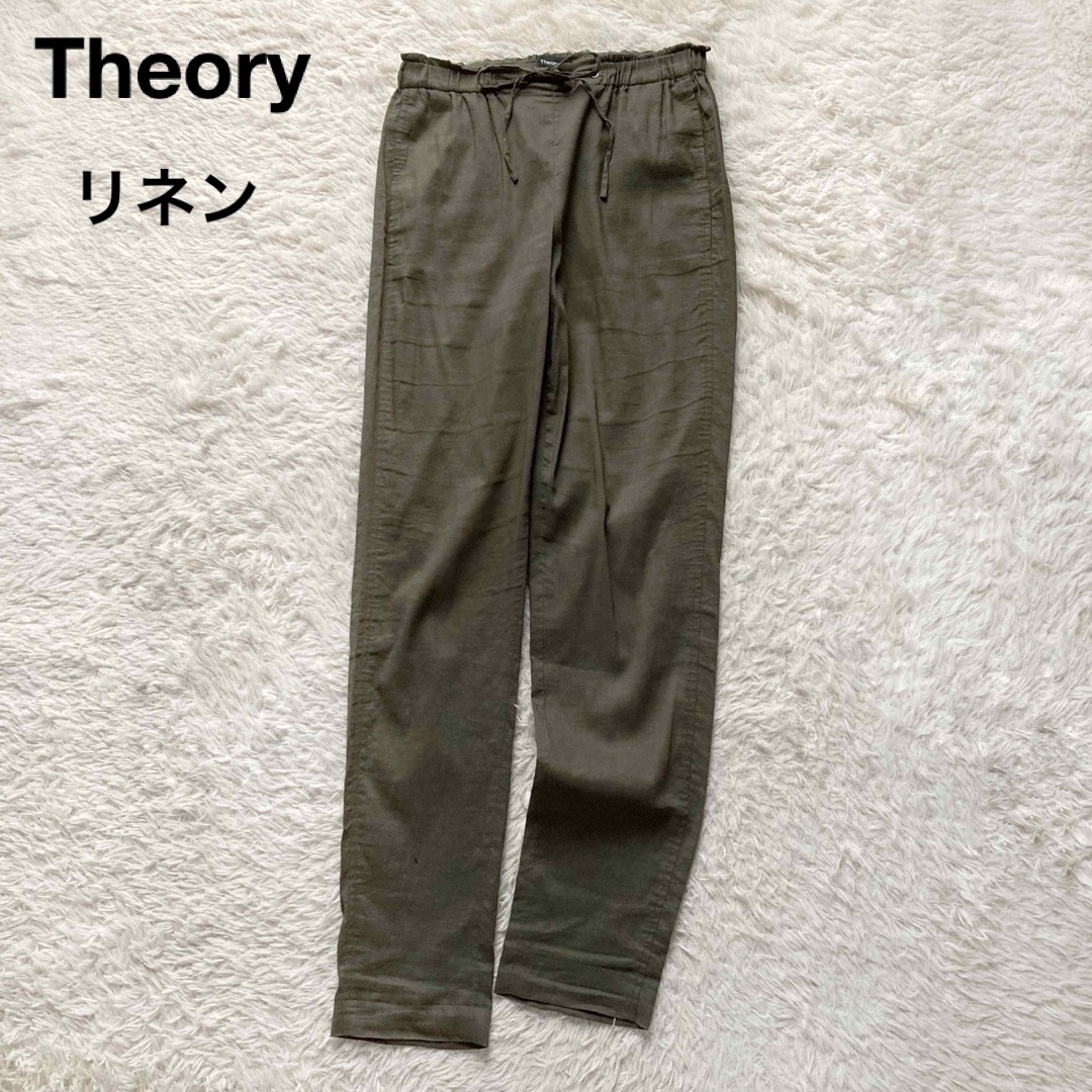 - セオリー Theory ストレッチリネン イージーパンツ 美脚テーパード カーキ P/Sサイズ
