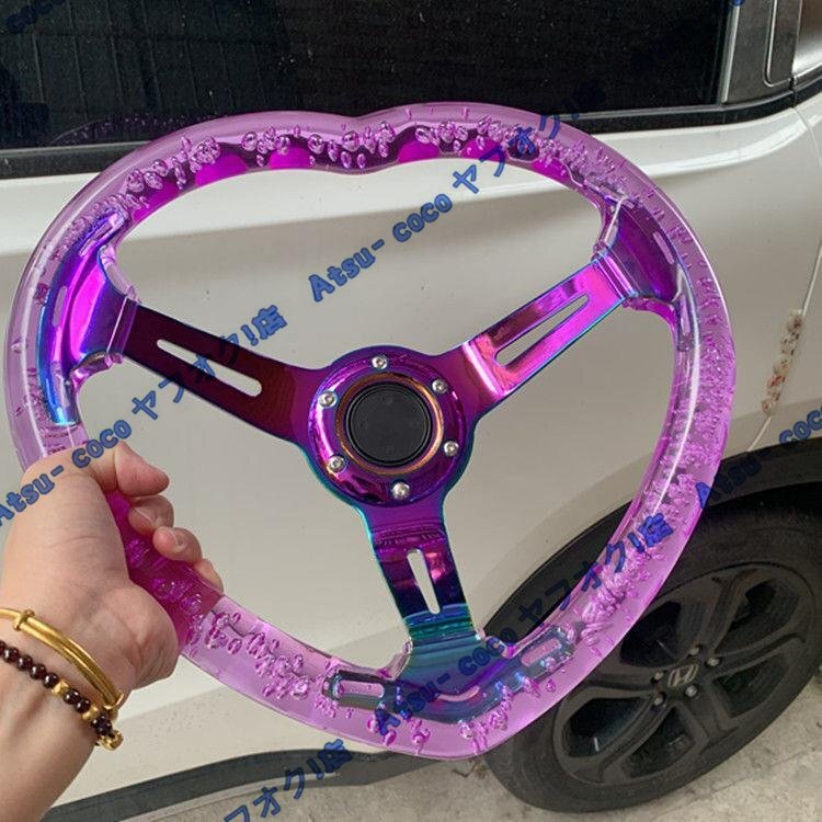 - 新品 品質 ハート 形状 カラー ステアリング ハンドル 350mm レーシングカー ステアホイール ギャル車 スポーツステアリングハンドル透明