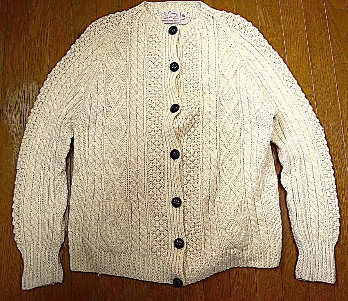 - 英国 アイルランド製 St Crone クルミボタン ビンテージ アランカーディガン