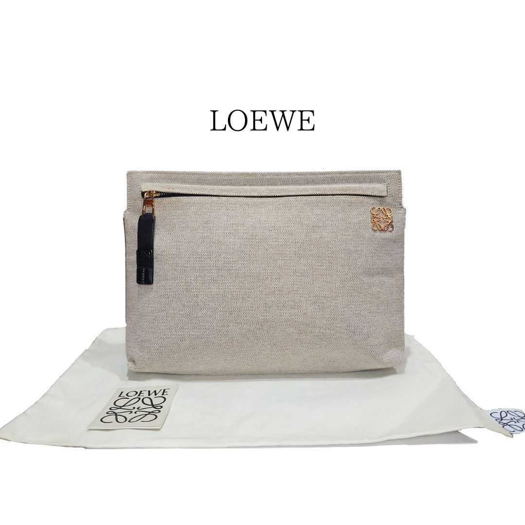 - 【鑑定済】LOEWE ロエベ ゴールド アナグラム ナチュラル クラッチバッグ セカンドバッグ ポーチ きなり レザー【送料無料】