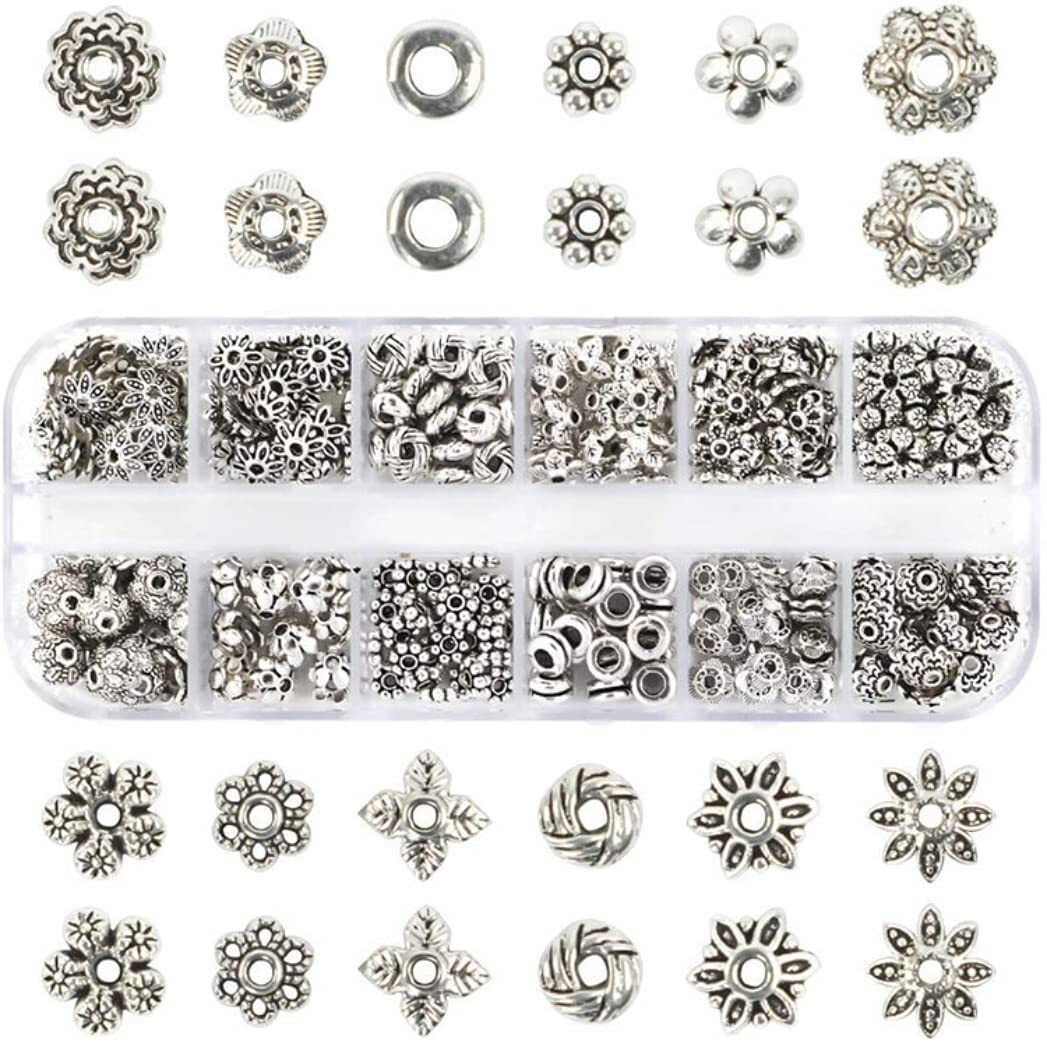 - シルバー スペーサー パーツ 12種 ブレスレット 360個入り アクセサリークラフト 金具 HappyHome DIY 手芸パー