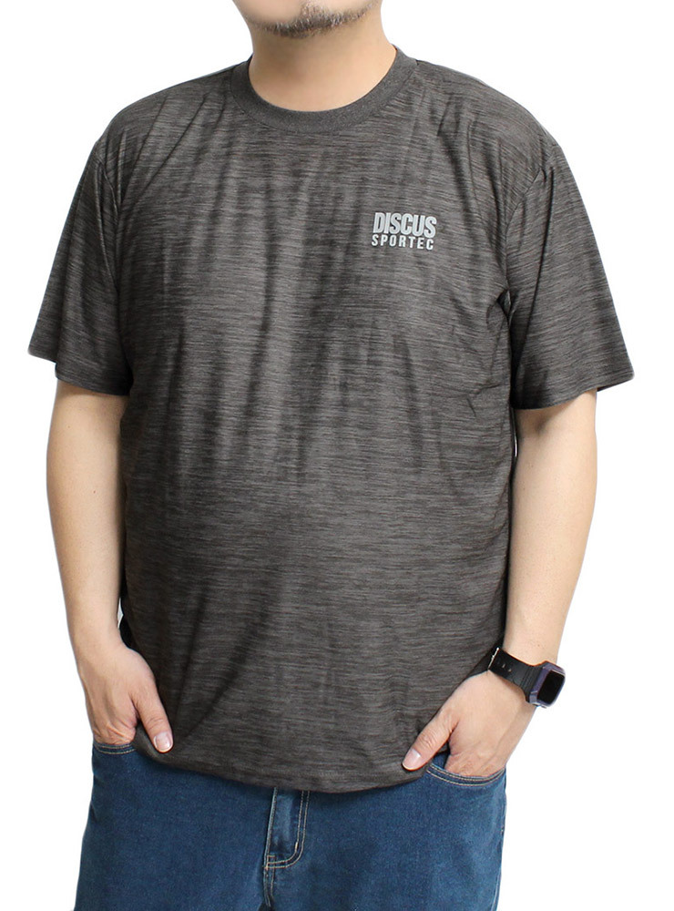 > 【新品】 4L 杢ブラック DISCUS ディスカス 半袖 Tシャツ メンズ 大きいサイズ カチオン ドライ 吸汗速乾 抗菌 防臭 ロゴ プリント クルー