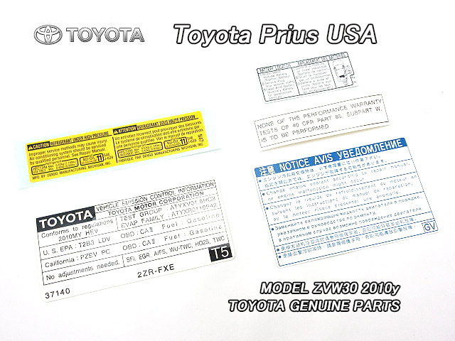 > プリウスZVW30前期【TOYOTA】トヨタPRIUS純正USラベル5点-ボンネットフード裏側(2010年モデル)/USDM北米仕様コーションステッカーUSAセット