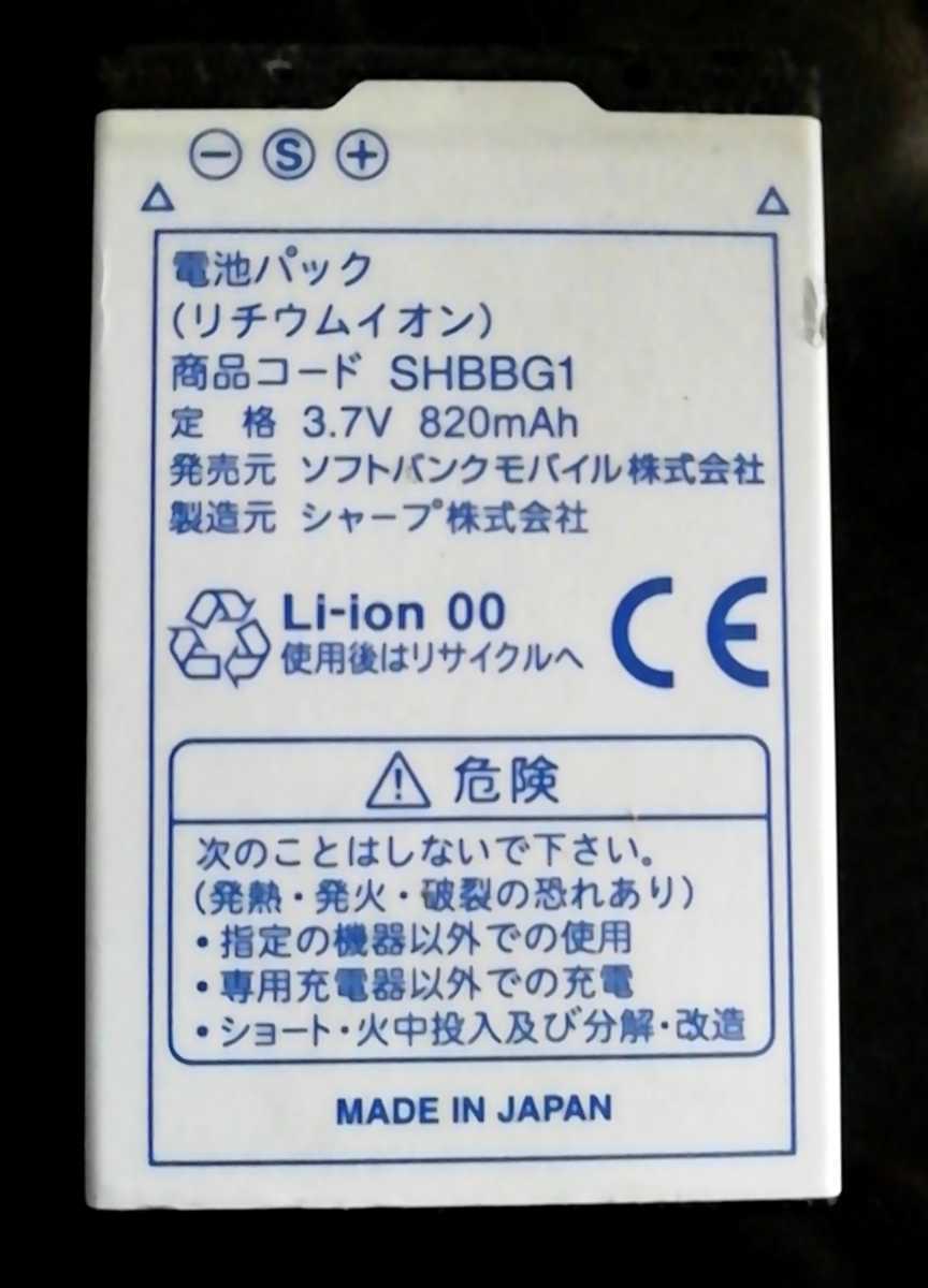 > 【中古・残り1個】ソフトバンクSHBBG1純正電池パックバッテリー【充電確認済】対応機種(参考)922SH/920SH/920SHYK