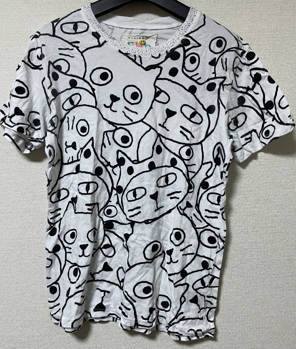 - 【古着】ララキューブ(LALACUB)半袖Tシャツ(Fサイズ。ネコ柄②)※現在はブランド名がPebbly(ぺブリー)