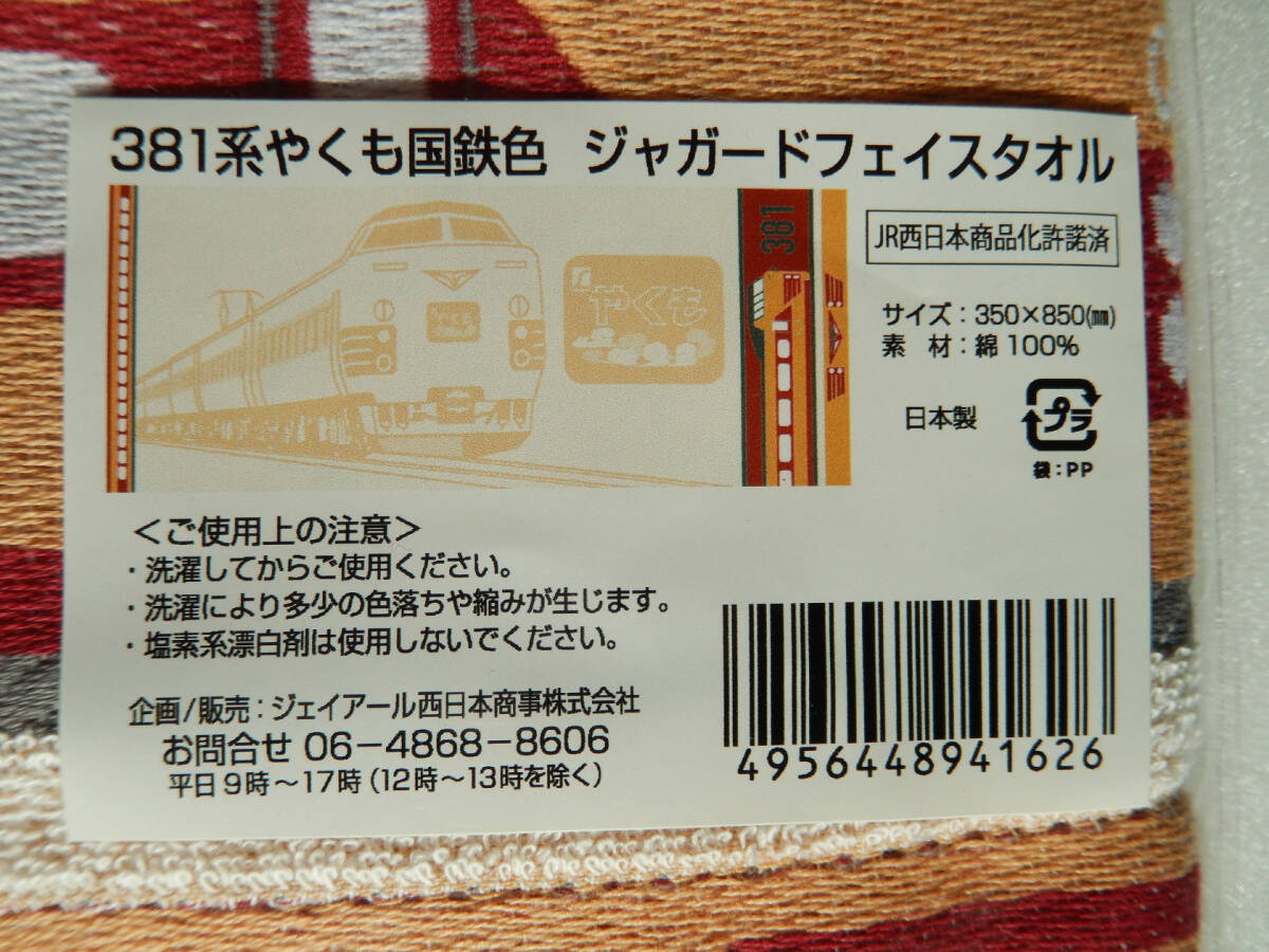 > JR西日本《 381系 L特急 「やくも」 国鉄色 ヘッドマー ク車両 デザイン フェイス タオル 》☆★☆★☆★☆★☆ 鉄道 グッズ 電車 列車