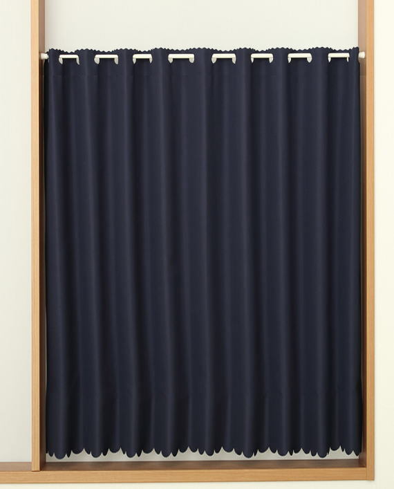 - 小窓用遮光カフェカーテン風呂用カフェカーテン コナーNBネイビーブルー巾90x丈100cm-yama