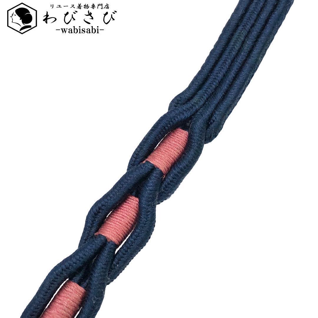 > 和装小物 帯締め 正絹 平組紐 組紐 三分紐 紺色 C-6304 着物 きもの kimono 和服 和装 中古 リサイクル着物 【送料無料】
