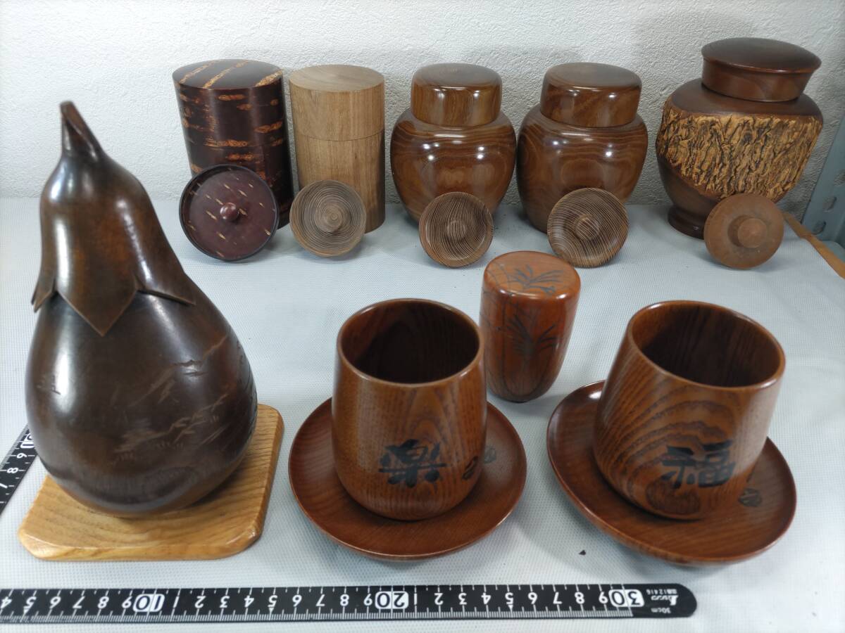 > ■送料無料!■まとめて■茄子形茶入・H18cm■茶筒■蓋物■茶道具■煎茶道具■湯呑み■茶托■木製■10点セット!