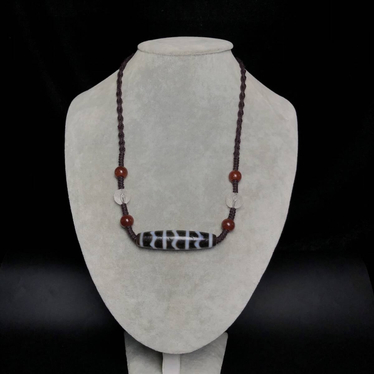 > 多宝閣■206282 和田玉【高油性緑青水模様のDziビーズ、クリスタルロータス、赤瑪瑙ビーズネックレス】 彫刻品 珍品旧蔵 極上珍品 孤品