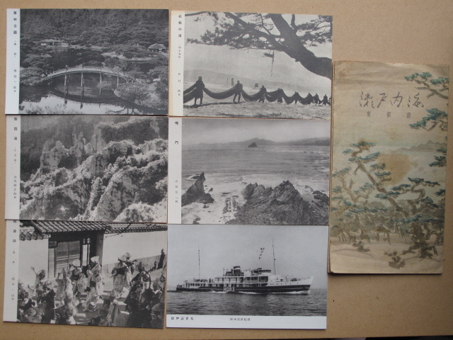 - 昭和10年代 船舶 踊り 名所 絵葉書 『 瀬戸内海 東部篇 』 計6点 袋入 未使用 関西汽船刊 袋装画 池田遥邨画伯 阪神淡路航路 はやぶさ丸