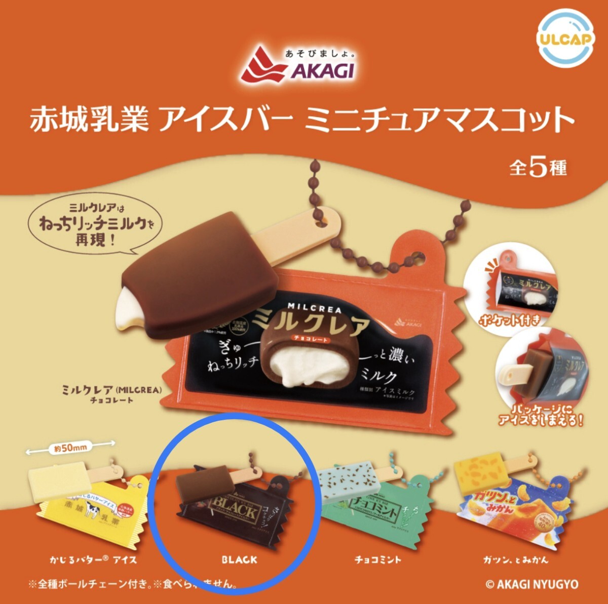 - 赤城乳業 アイスバー ミニチュアマスコット / BLACK / 新品 ガチャ