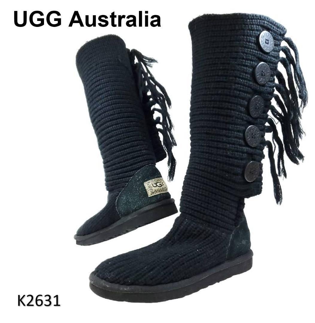 - アグオーストラリア 美品 ニットブーツ ボタン フリンジ ブラック 23cm