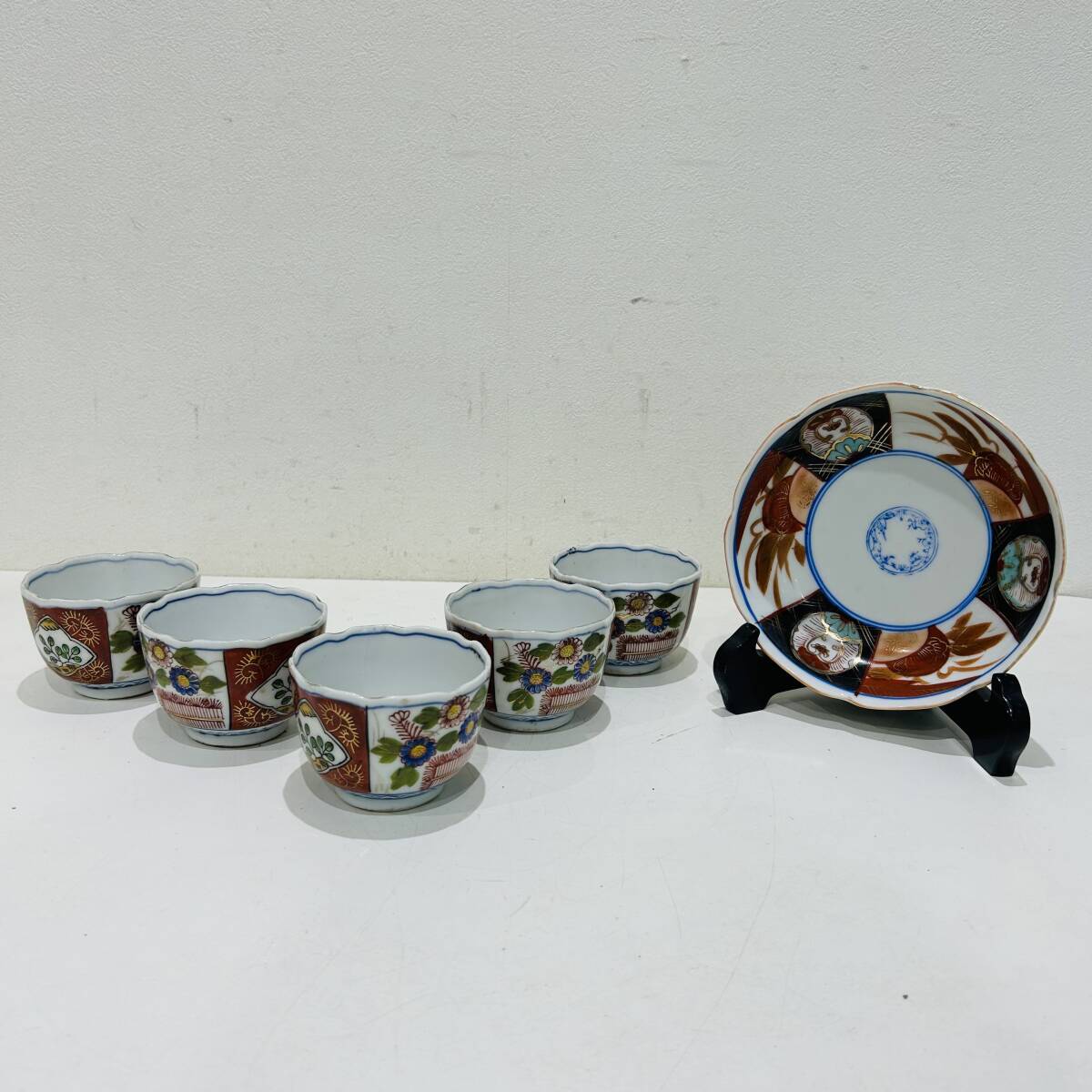 - 時代物 九谷焼 蕎麦猪口 5客 直径約8.5㎝ /九谷焼 なます皿 1枚 直径約16㎝ まとめ 金彩 骨董 アンティーク 現状品 NC1921 i