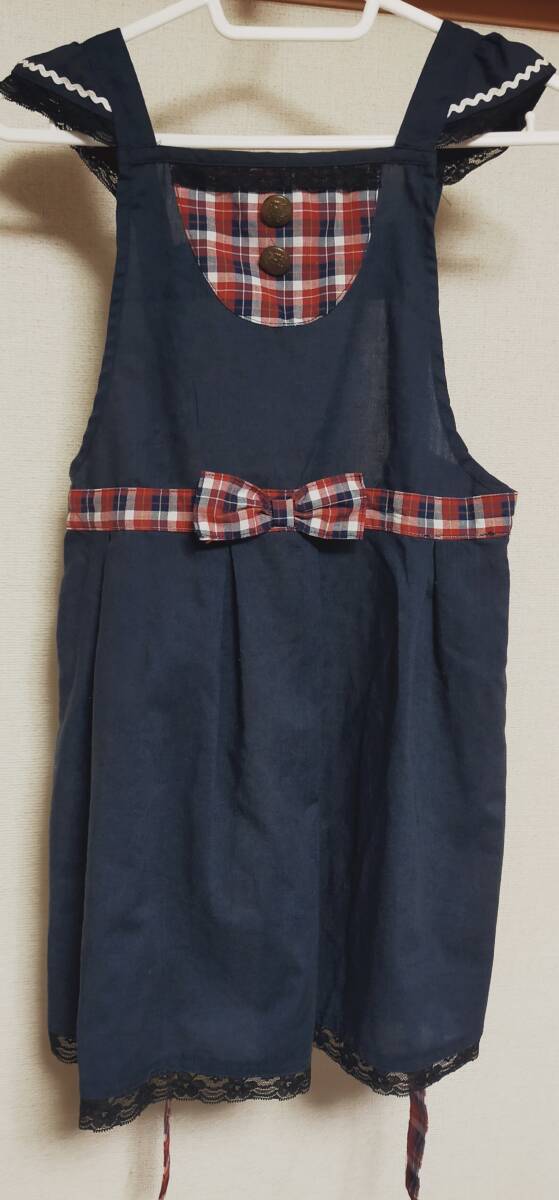 - 数回着用程度★子供衣料 子供 キッズ 女の子 エプロン ネイビー 130サイズ レース 可愛い