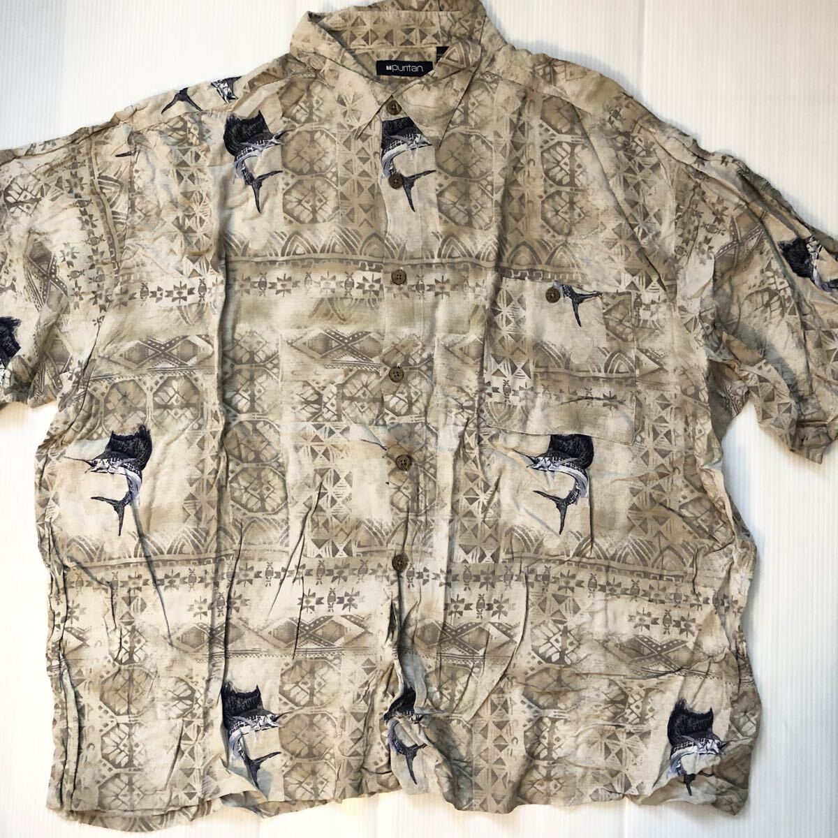 - ピューリタン puritan 3XL カジキ柄 ハワイアンシャツ アロハシャツ ベージュ