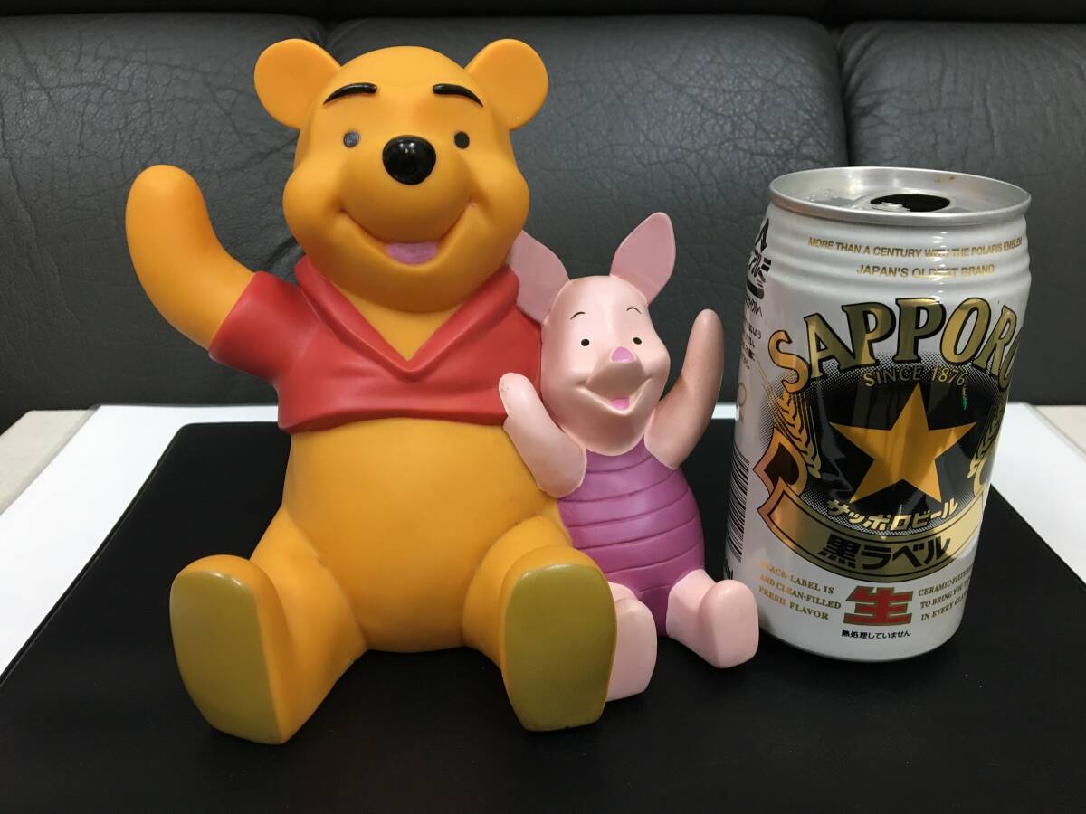 - ディズニー「クマのプーさん&ピグレット ソフビ貯金箱」フィギュア インテリア ビンテージ 置物(手前棚3保管)