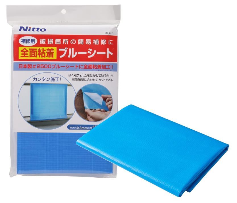 - ◆送料無料◆新品◆Nitto ニトムズ◆補修用全面粘着ブルーシート◆幅1m×長さ1m×厚さ約0.3mm 1枚入◆日本製♯2500◆M6442◆即決◆