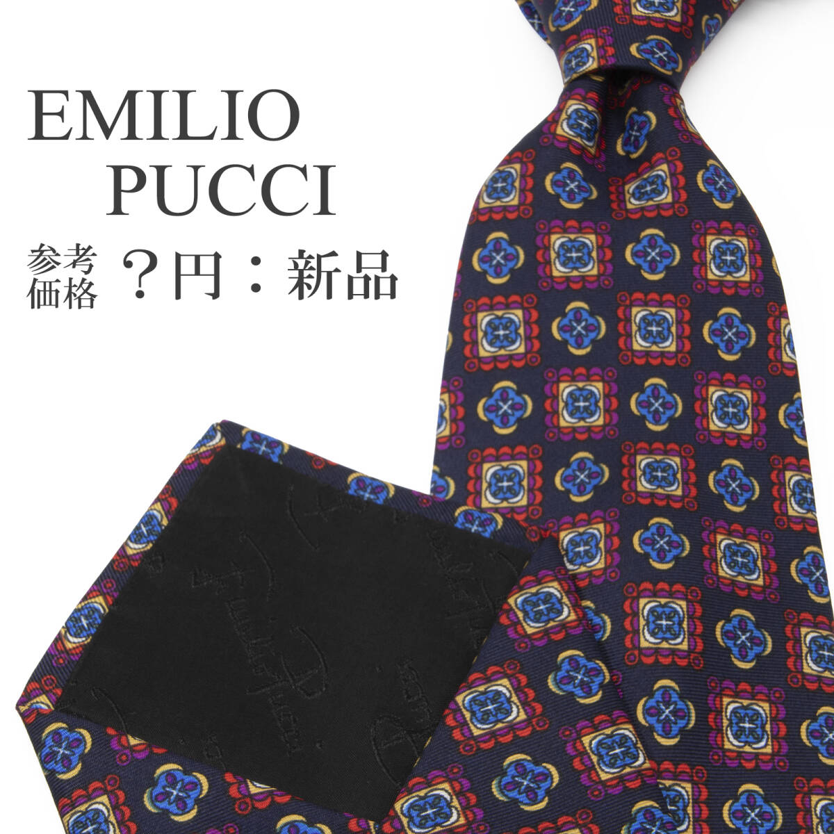 > 送料無料 エミリオプッチ ネクタイ 新品 シルク ネイビーブルー 青 紫 赤 ベージュ 白 紋様 マーク ブランド 珍しい イタリア製 綺麗 P276